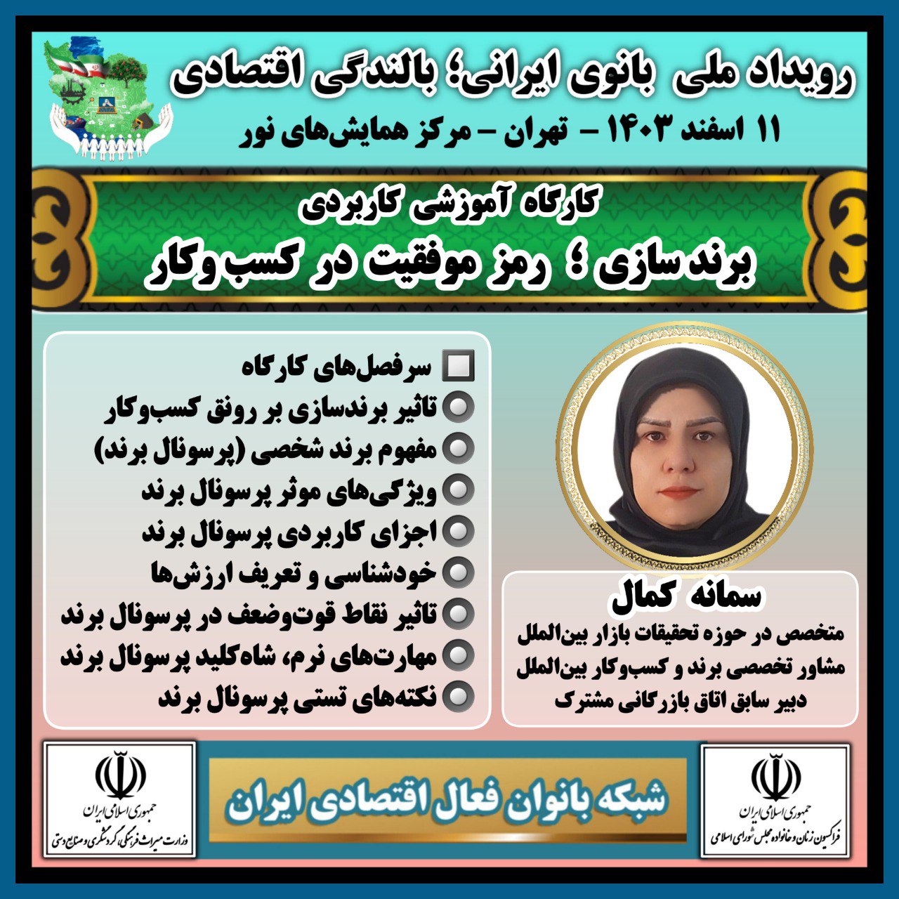 سخنرانی و کارگاه برندسازی درهمایش زن ایرانی بالندگی اقتصادی