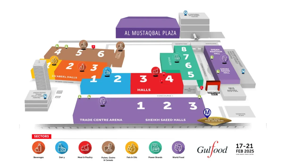 نقشه نمایشگاه غذا و نوشیدنی دبی (گلفود 2025)