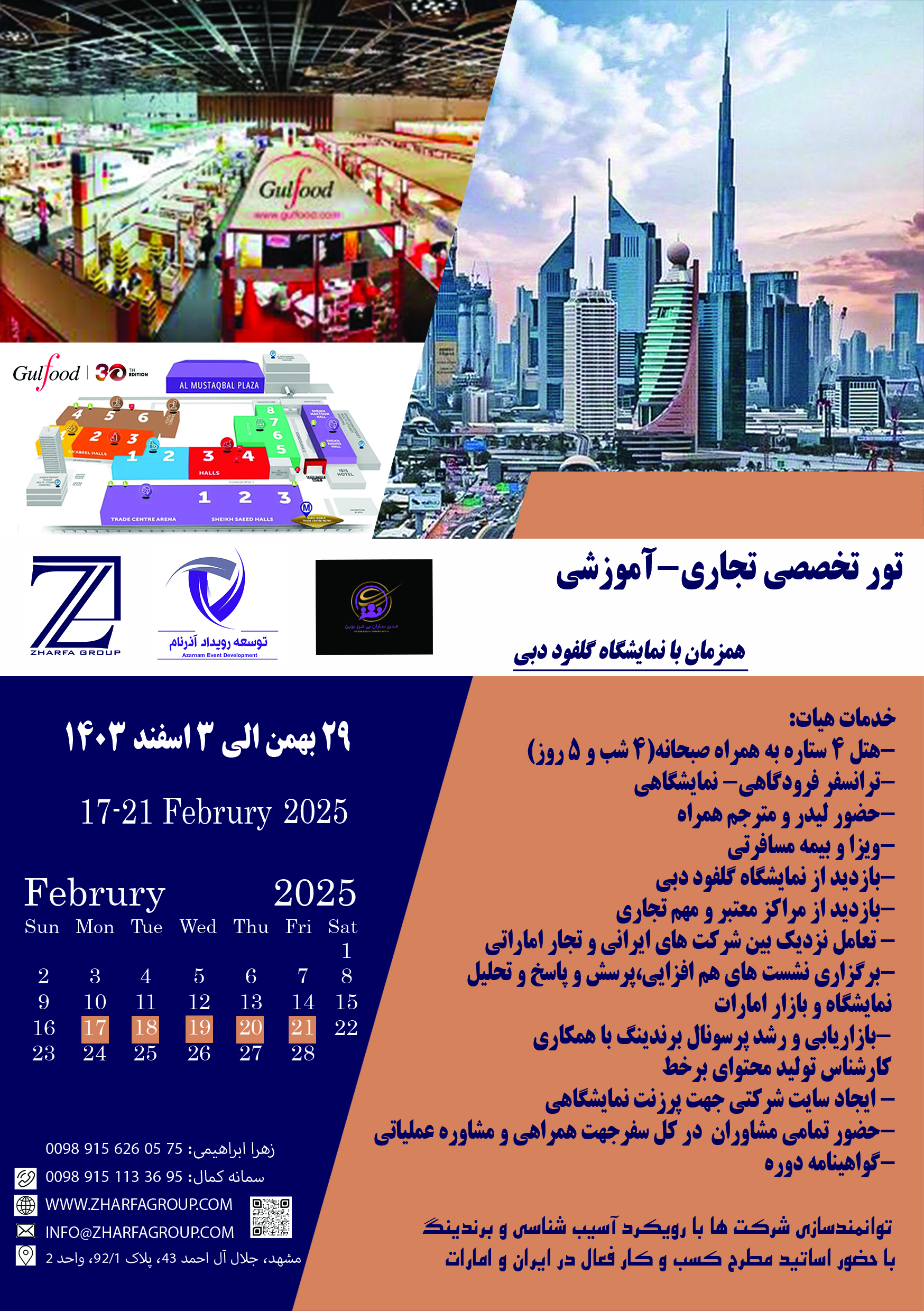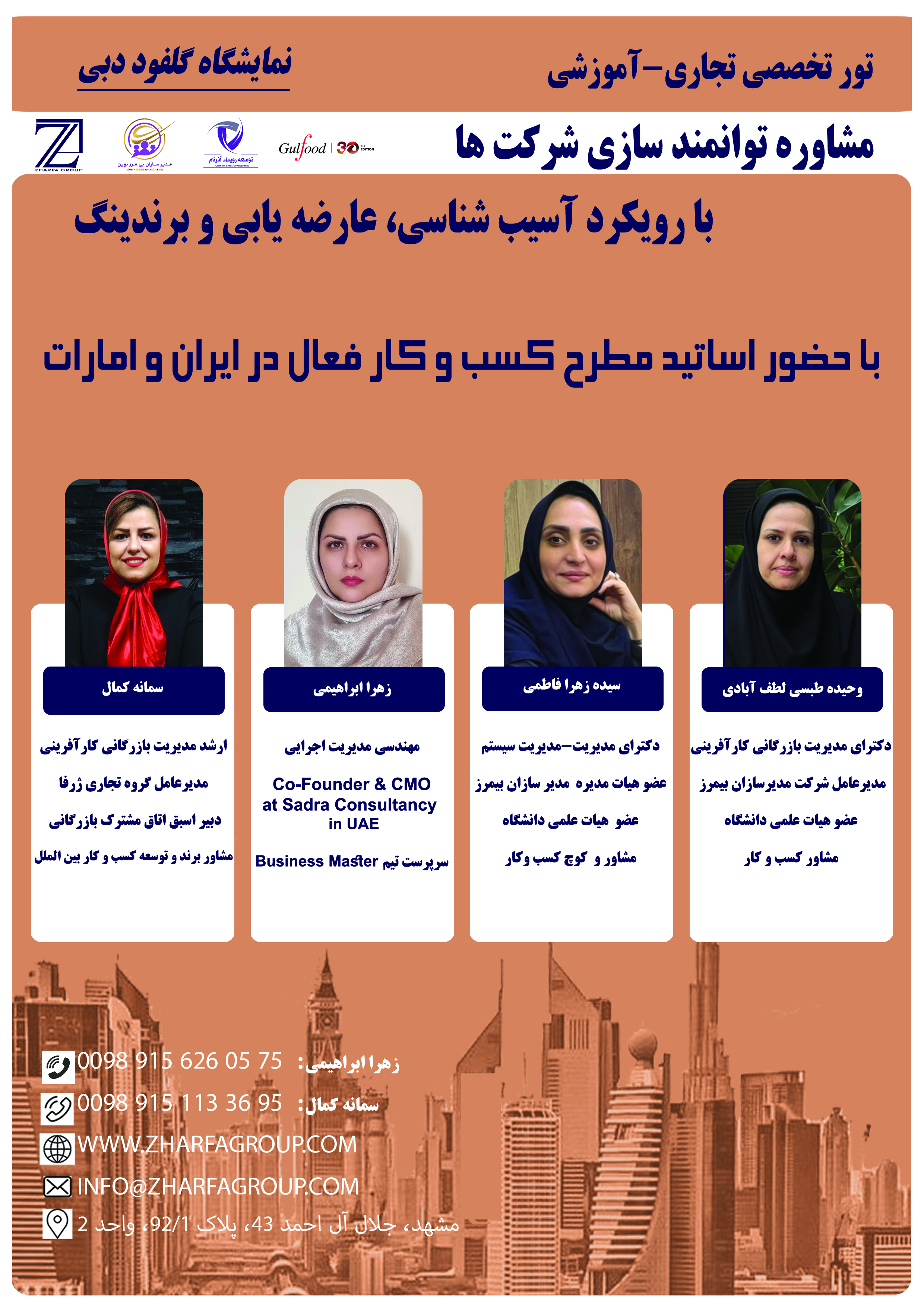 1. تور تجاری آموزشی گروه تجاری ژرفا با همکاری مشاورین مطرح کسب و کار در ایران و امارات برگزار می شود.